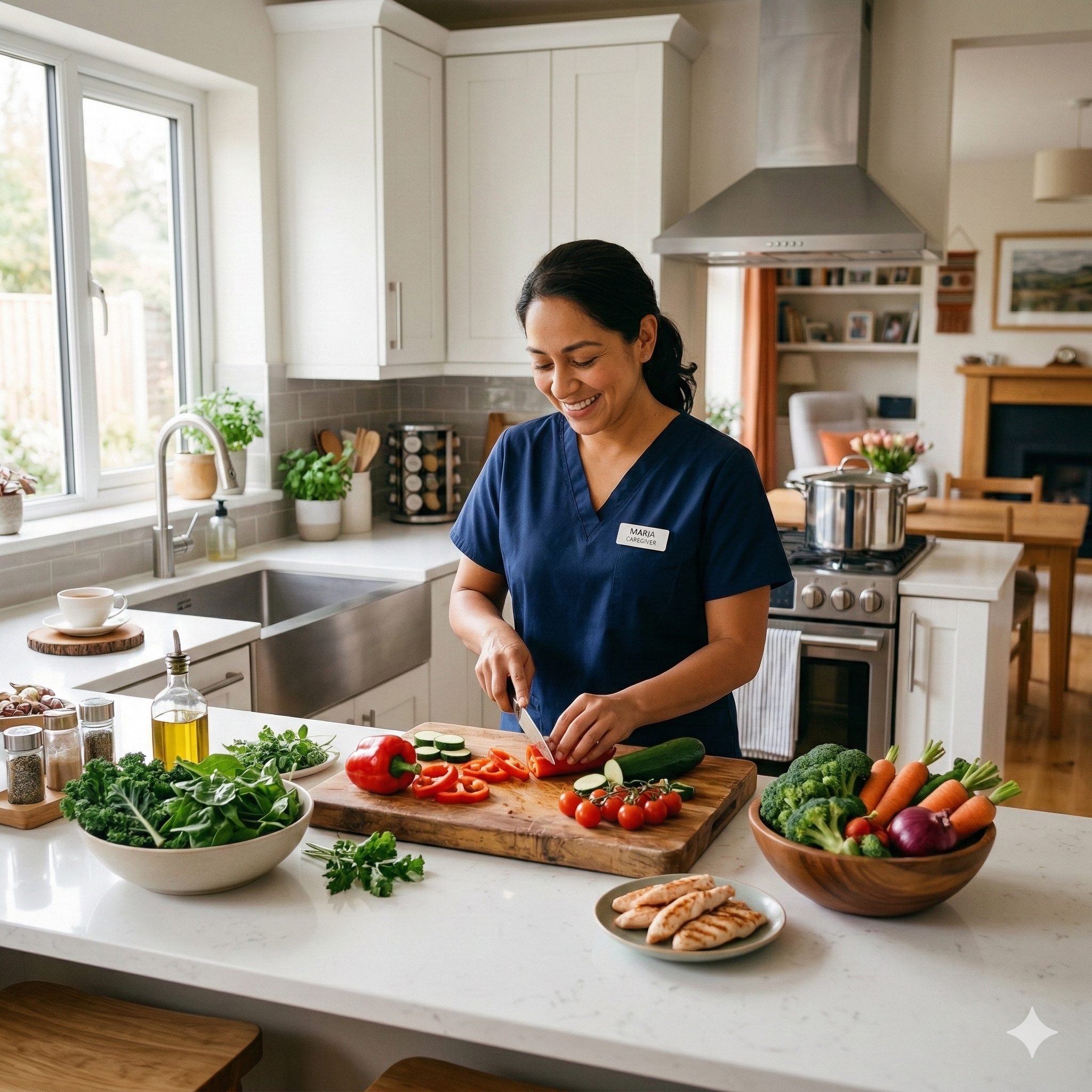 Nutritious, home-cooked meals prepared according to your dietary needs and preferences.